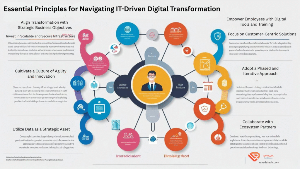 Below, we outline the guiding principles for orchestrating IT-driven digital transformation, bolstered by illustrative examples and case studies.